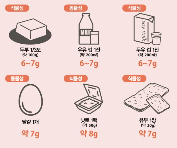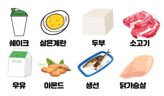 - 동물성 + 식물성 단백질을 균형 있게 섭취하는 것이 가장 좋아요!