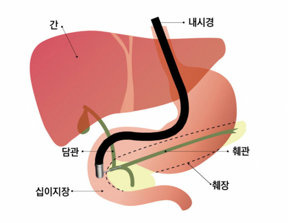 췌장과 담도는 해부학적으로 가깝습니다. 염증/부종이나 담석이 담즙 흐름을 막으면 피부·눈 흰자 노랗게(황달), 소변 짙은 갈색, 변이 옅거나 회색으로 바뀔 수 있습니다
